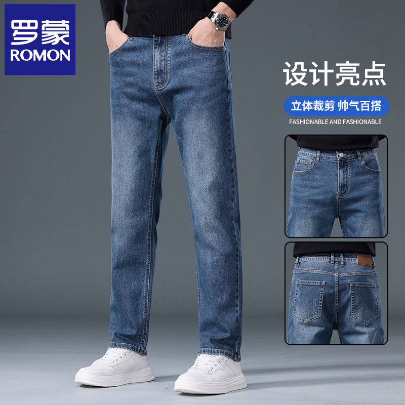 罗蒙秋季新款男士牛仔裤宽松男款弹力直筒裤中年爸爸休闲裤子N1Z,广东 广州
