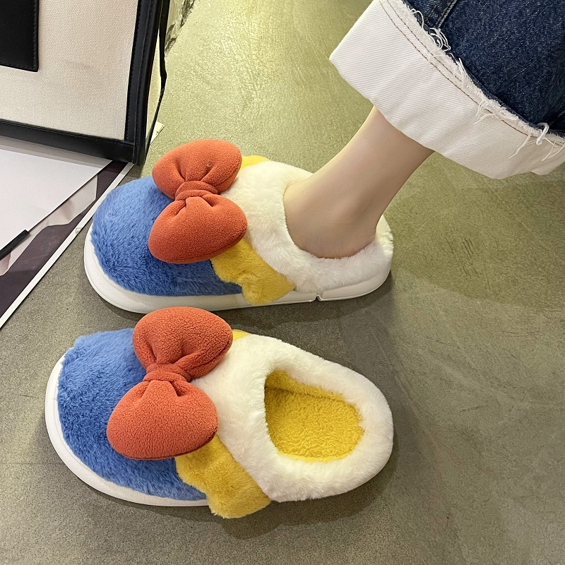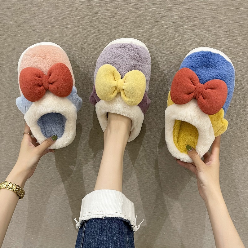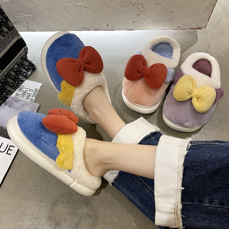 蝴蝶结棉拖鞋女秋冬季2025年新款可爱厚底室内家居家防滑月子棉鞋,浙江 宁波