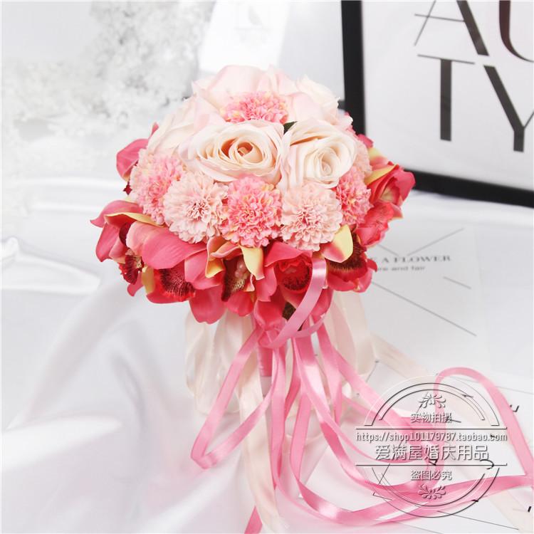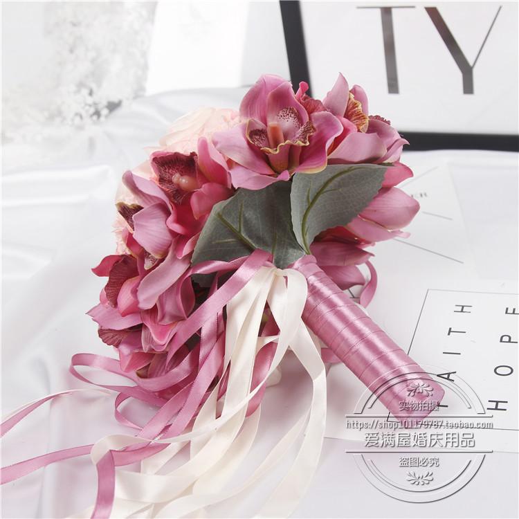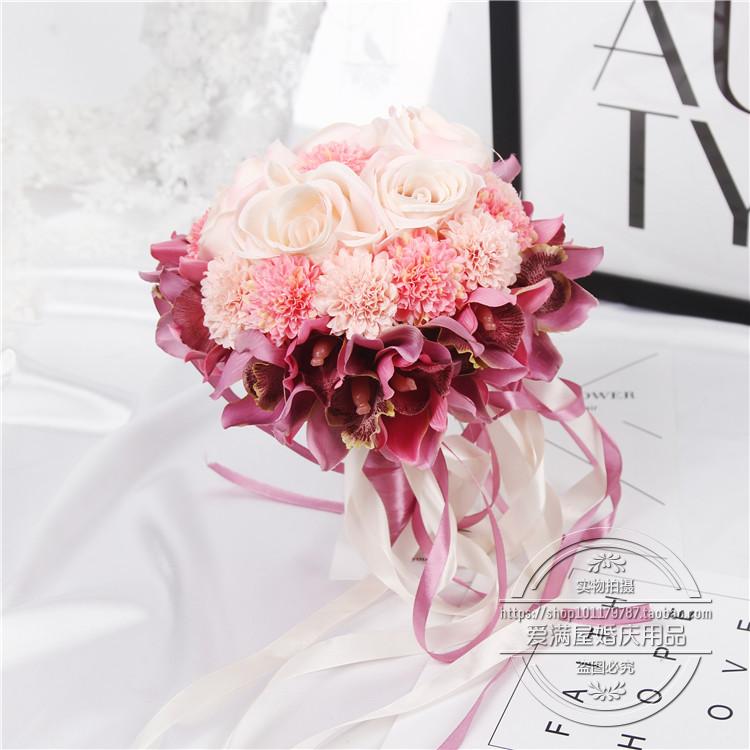 欧式新娘手捧花伴娘姐妹团手花洋兰花束照相馆拍摄惠兰婚礼手捧花