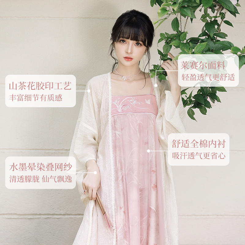 汉尚华莲[兰雾]汉服女改良国风汉元素对襟衫吊带连衣裙温柔套装,广东 广州