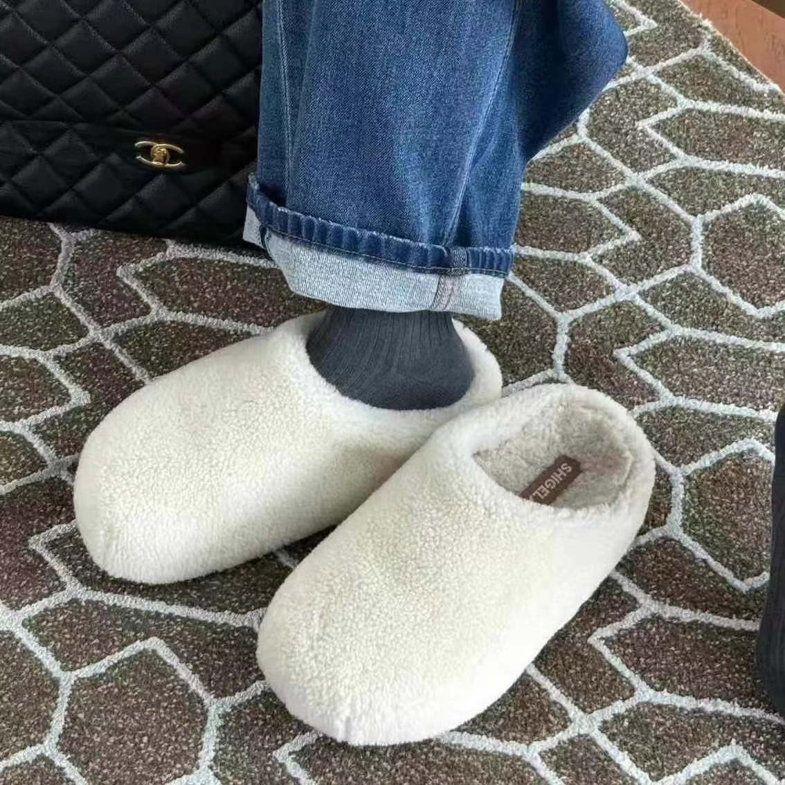 诗歌兰毛毛鞋女2025秋冬新款时尚羊羔毛厚底小个子加绒包头拖外穿