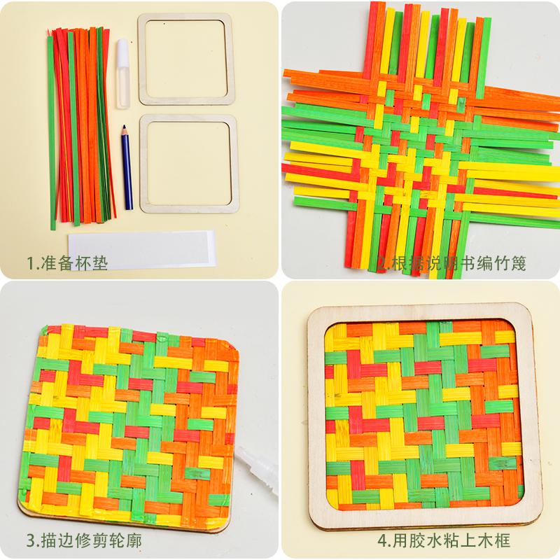 新年非遗手工竹编杯垫diy材料包儿童亲子团建沙龙社区暖场活动,浙江 金华