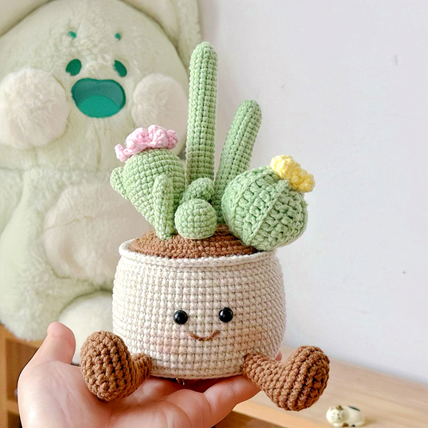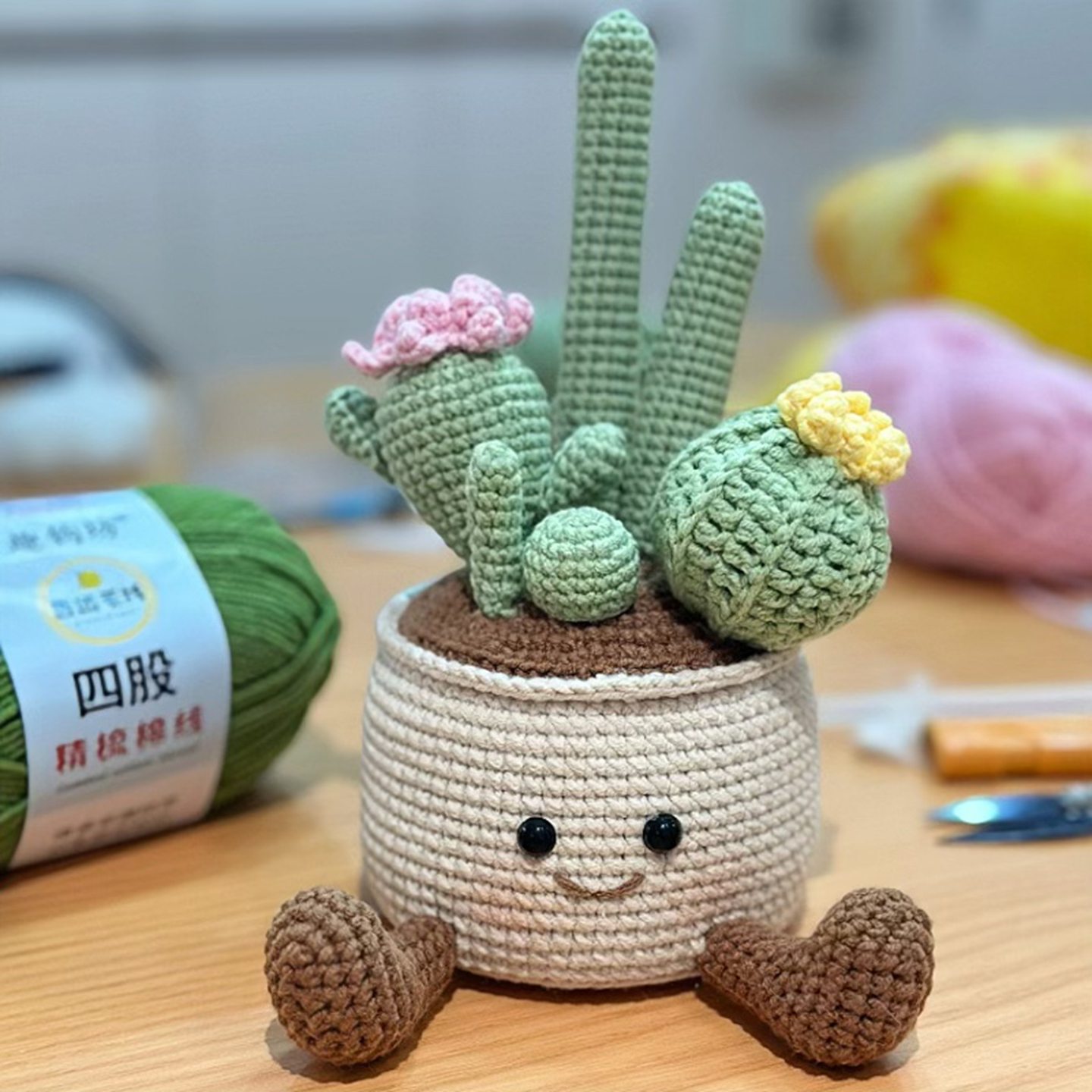 DIY手工仙人掌盆栽钩织jelly玩偶娃娃摆件毛线编织材料包钩针礼物,安徽 亳州