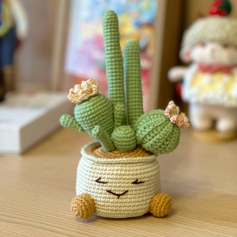 DIY手工仙人掌盆栽钩织jelly玩偶娃娃摆件毛线编织材料包钩针礼物