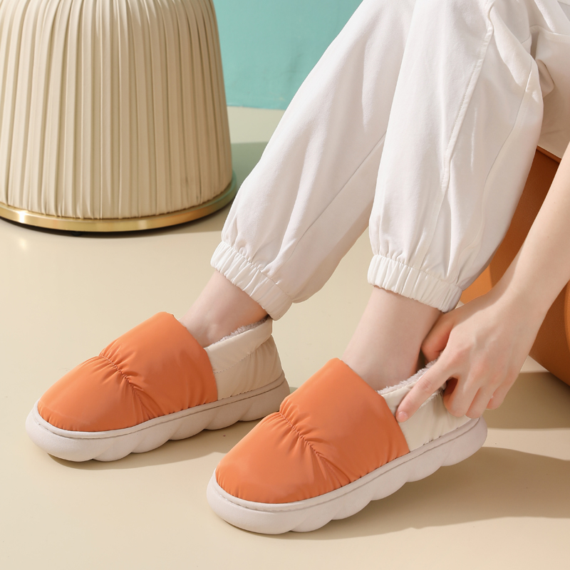 防水羽绒鞋面布棉拖鞋女冬季学生加绒加厚底全包跟棉鞋保暖居家用,浙江 宁波