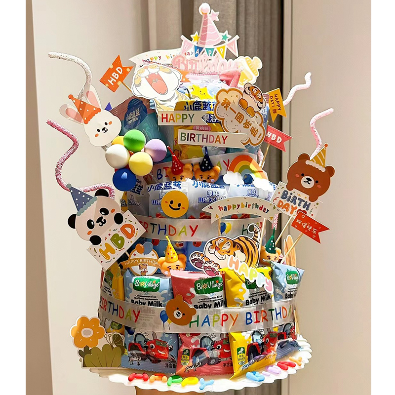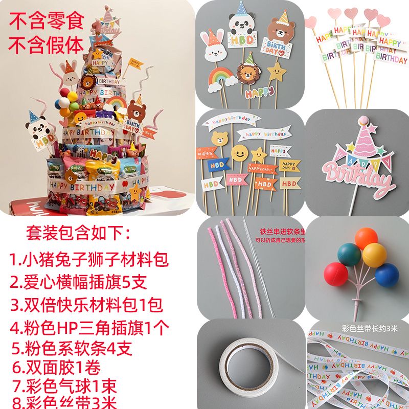 零食生日蛋糕装扮材料包泡沫胚套装零食假体生日蛋糕装扮diy插件