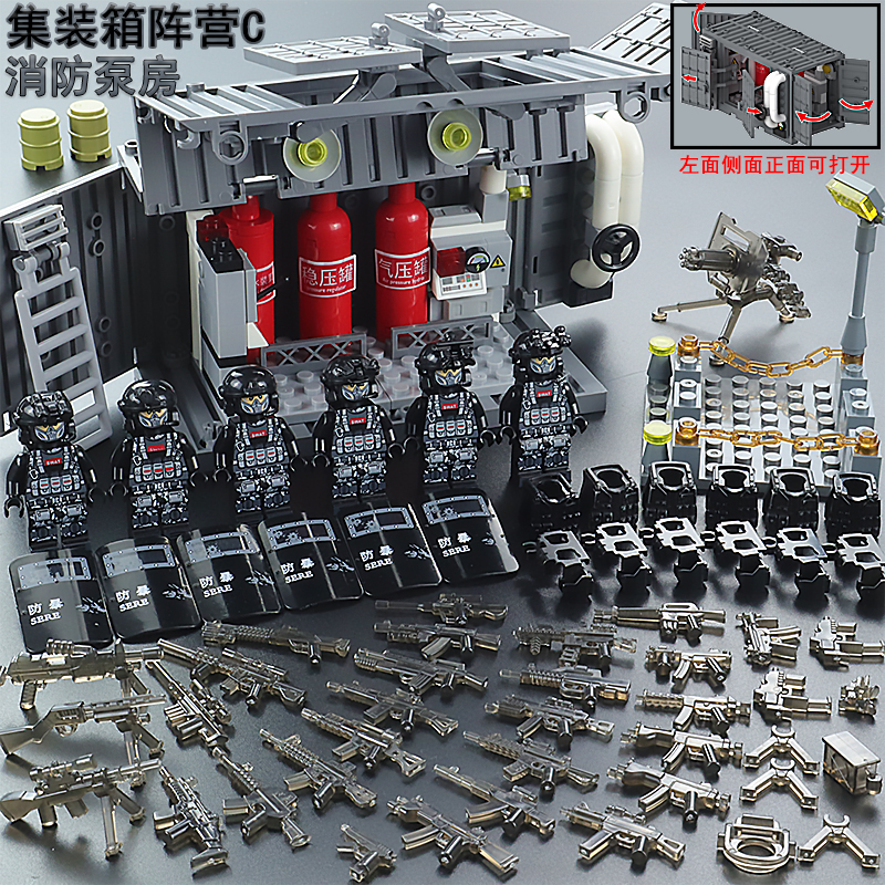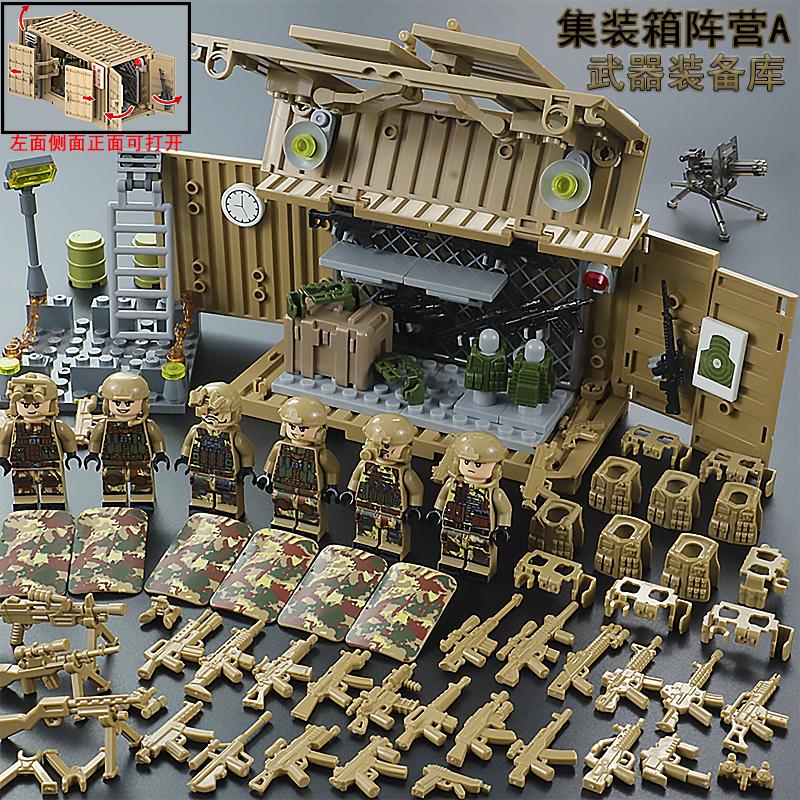武器库特种兵军事基地装备储存室特警装甲车军火库男孩子积木玩具,广东 汕头