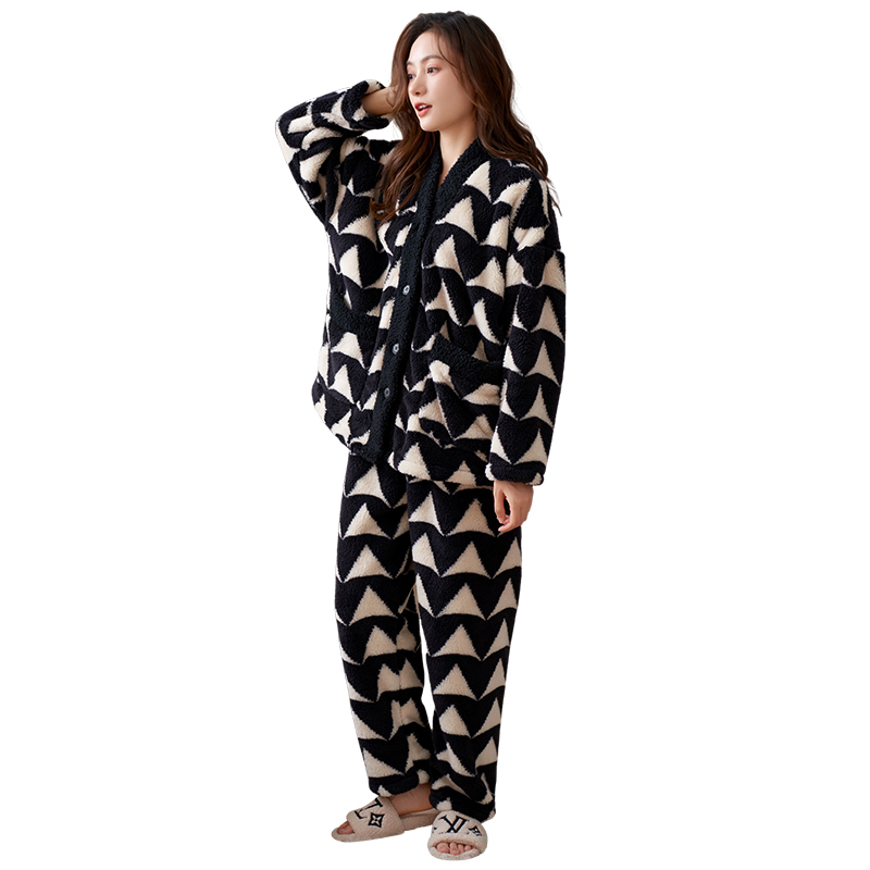 浪莎冬季毛毛睡衣女珊瑚绒加绒加厚2025秋冬新款保暖家居服套装,广东 汕头