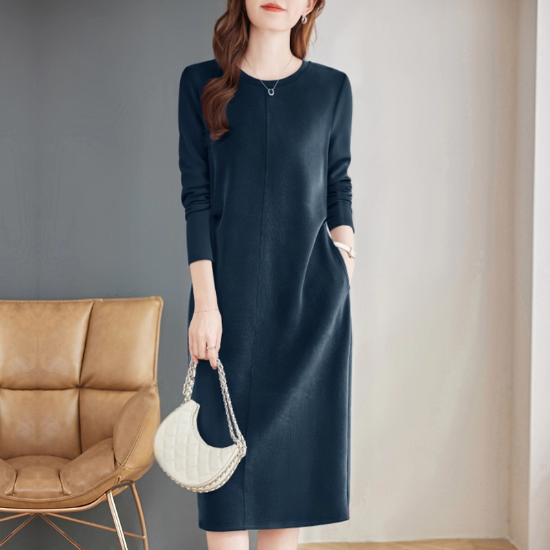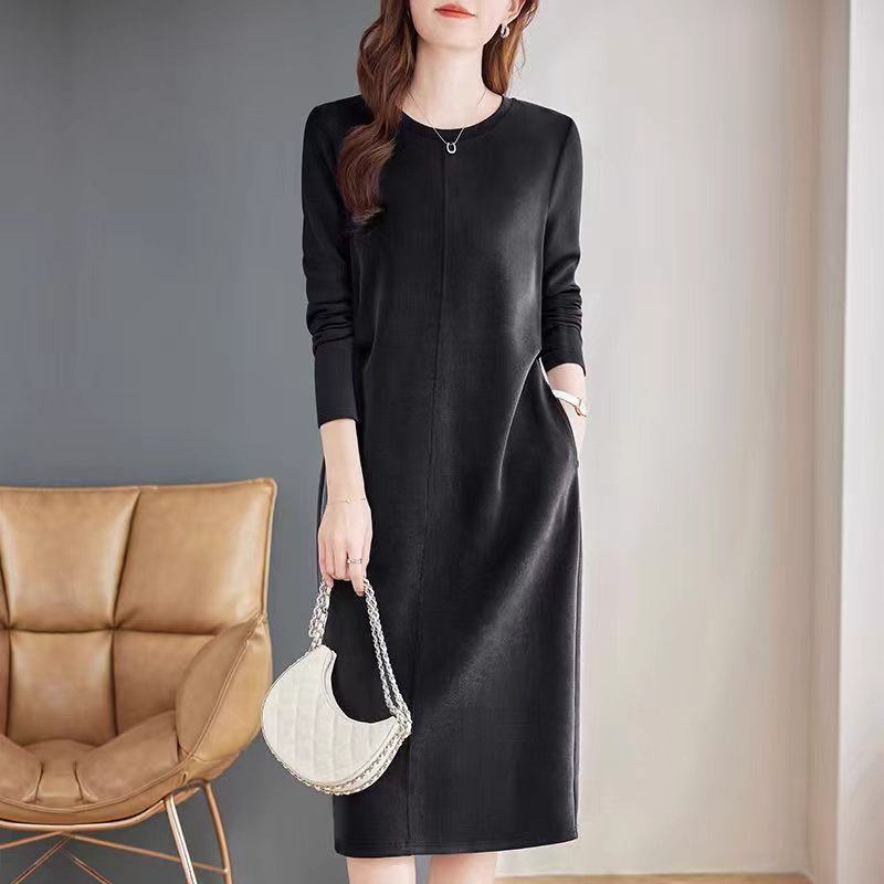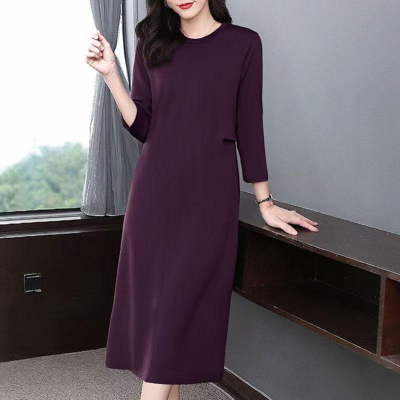 紫色长袖连衣裙春秋新款大码洋气女装胖mm宽松显瘦直筒中长款裙子,广东 揭阳
