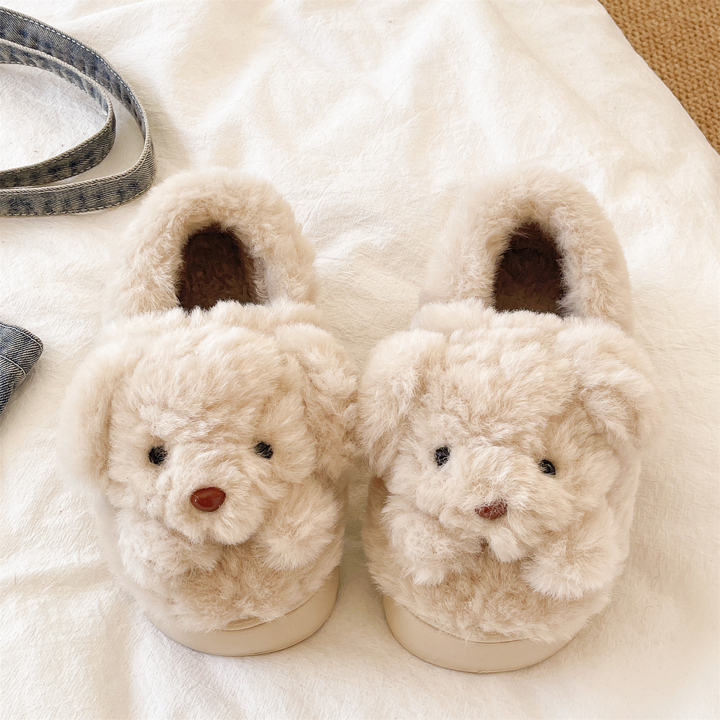 月子棉鞋女冬季可爱小狗居家室内防滑厚底加厚毛绒保暖包跟棉拖鞋,浙江 宁波
