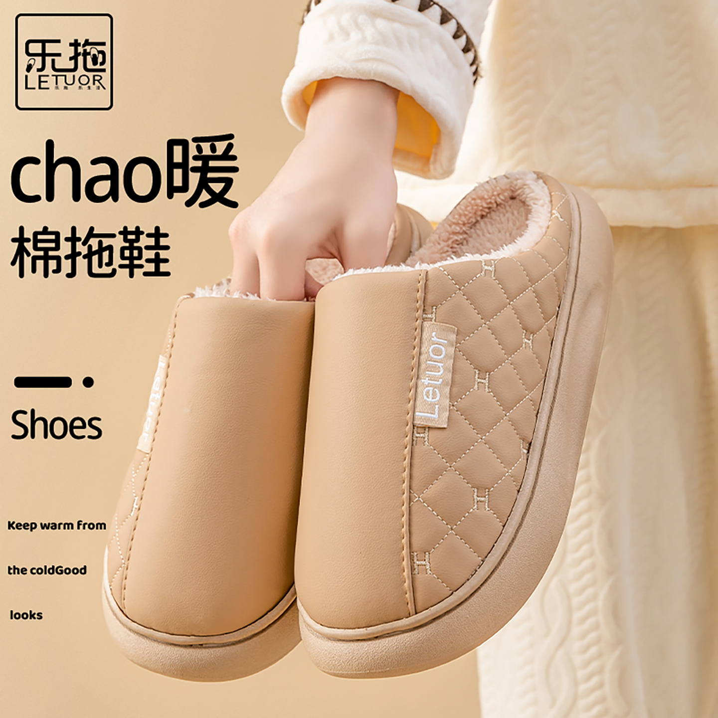 乐拖厚底居家棉拖鞋女秋冬季室内家用防滑PU防水保暖棉鞋男士冬天,浙江 台州