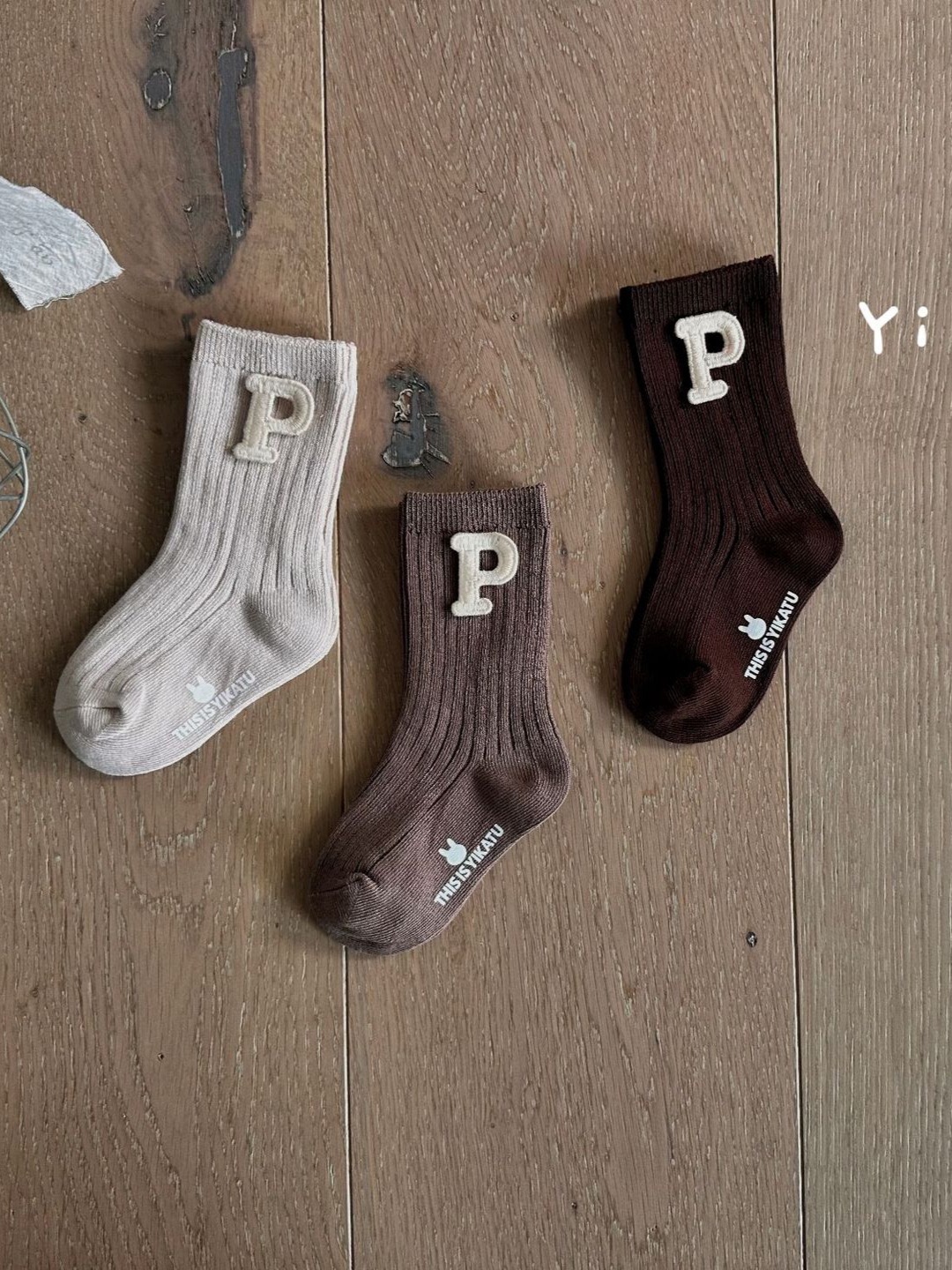 儿童袜子伊卡兔童袜2025秋冬新款韩系爆款字母P双针坑条童袜8129,河北 石家庄