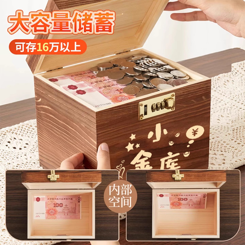 存钱罐密码锁成人2025新款可进可出大容量家用大人储蓄保险箱木质