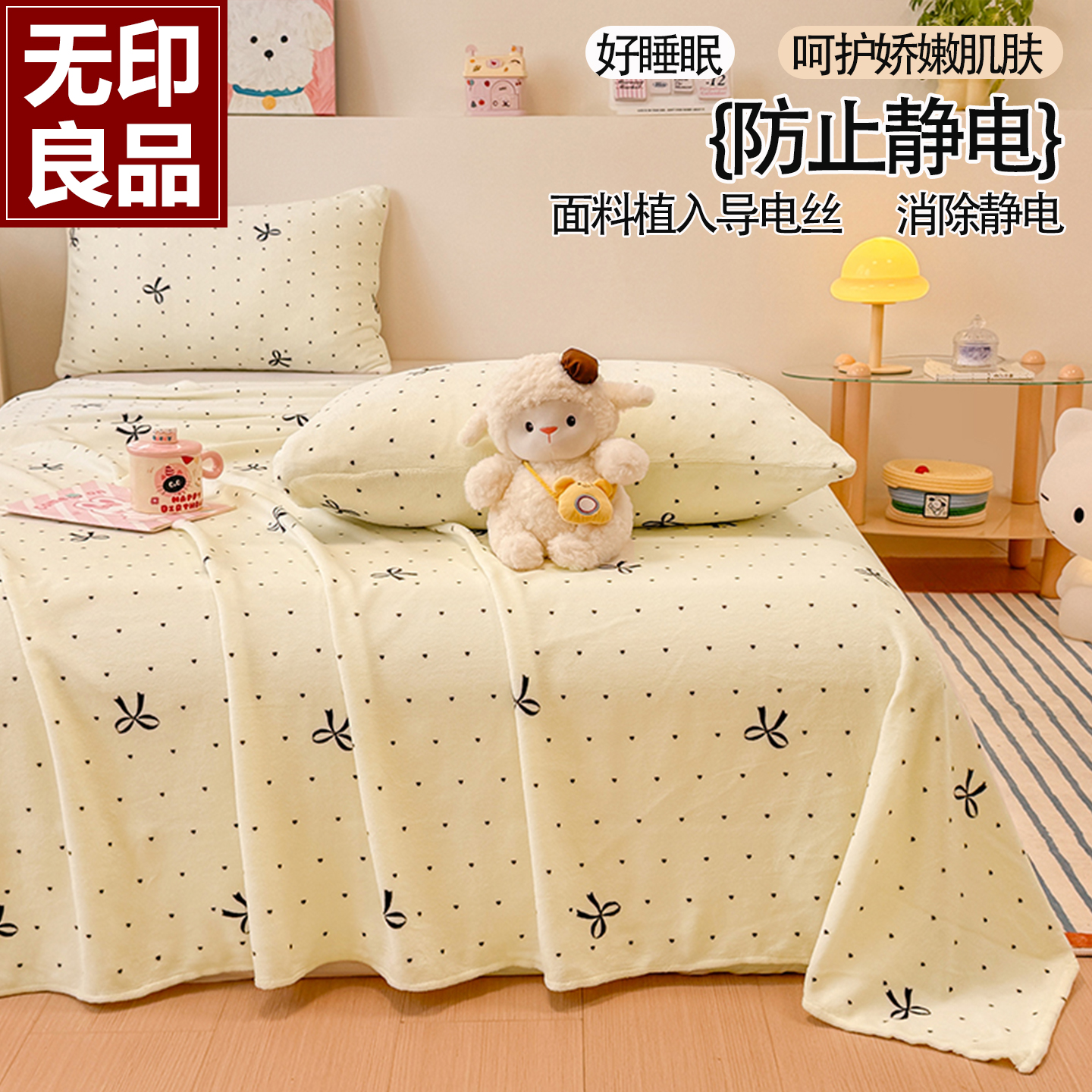 无印良品加厚牛奶绒床单单件冬季珊瑚绒法兰绒宿舍单人被单三件套