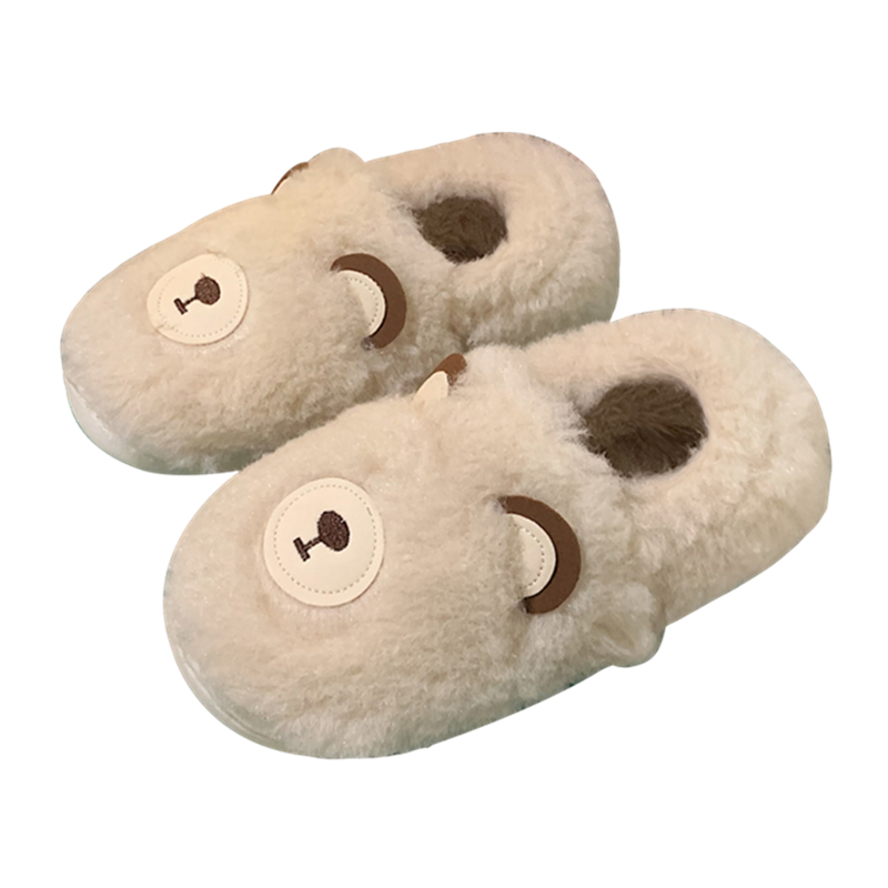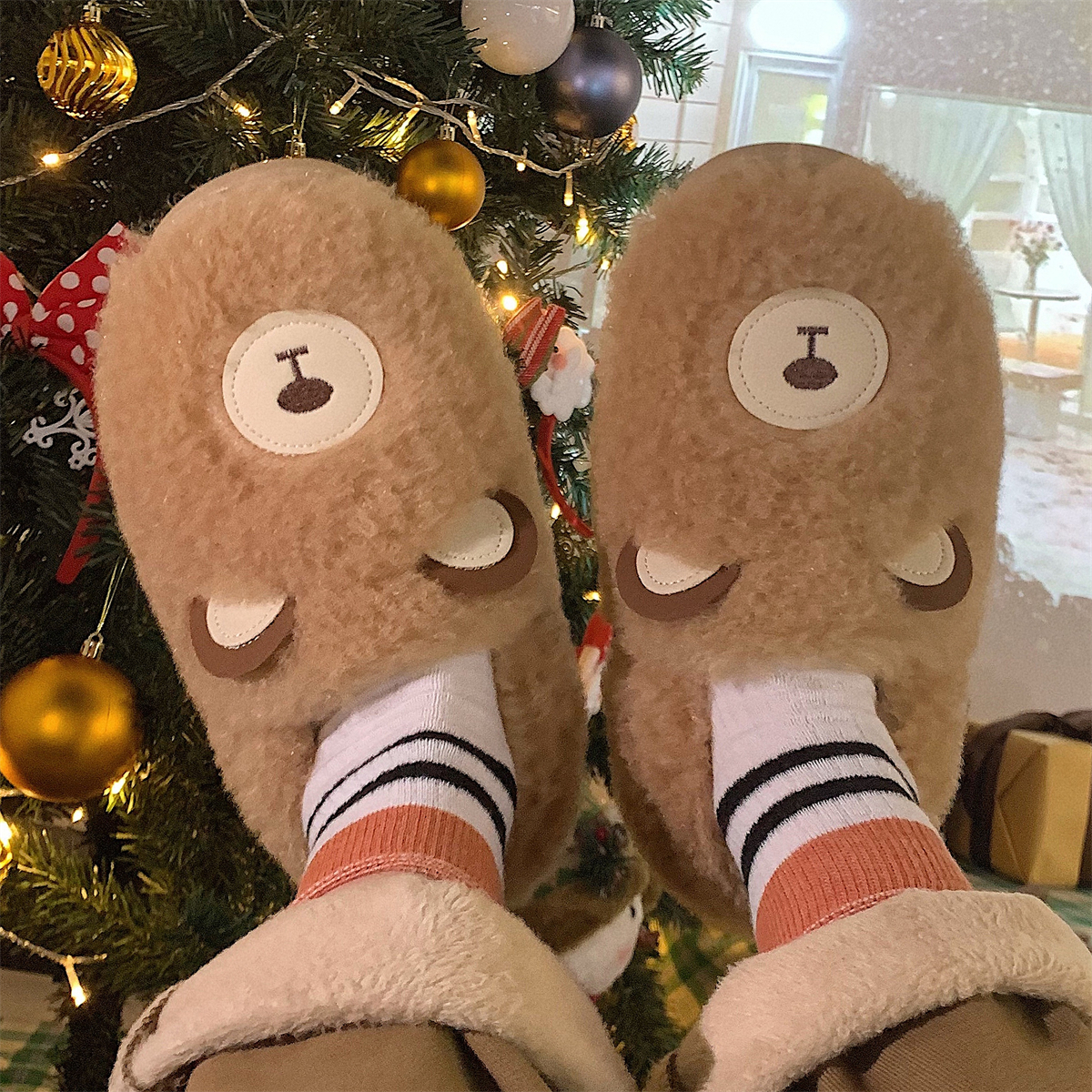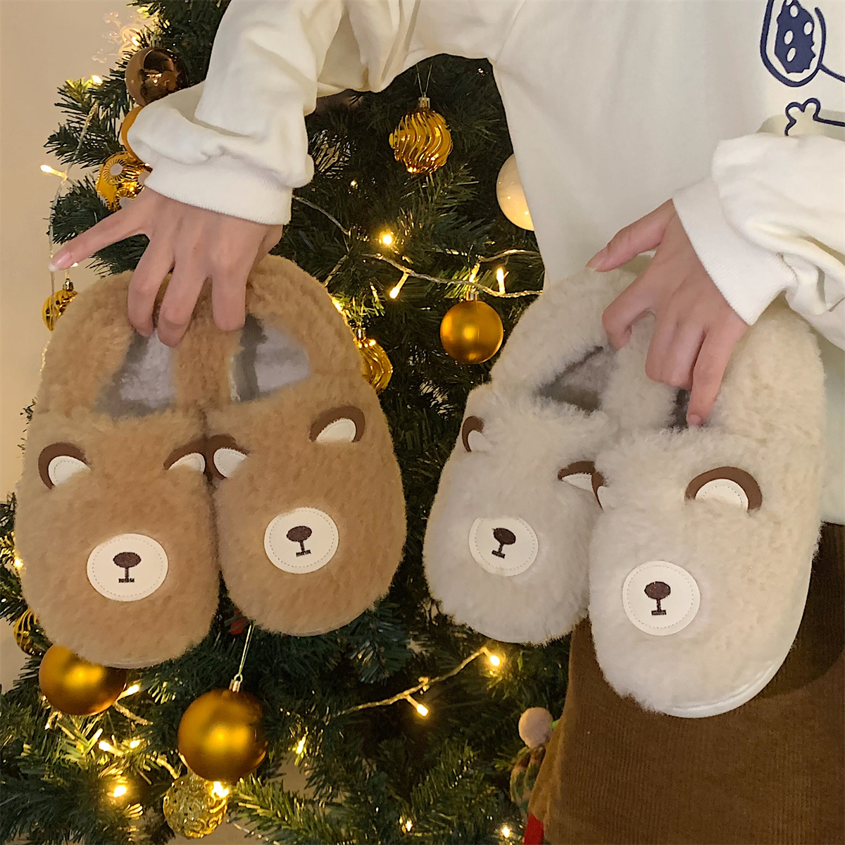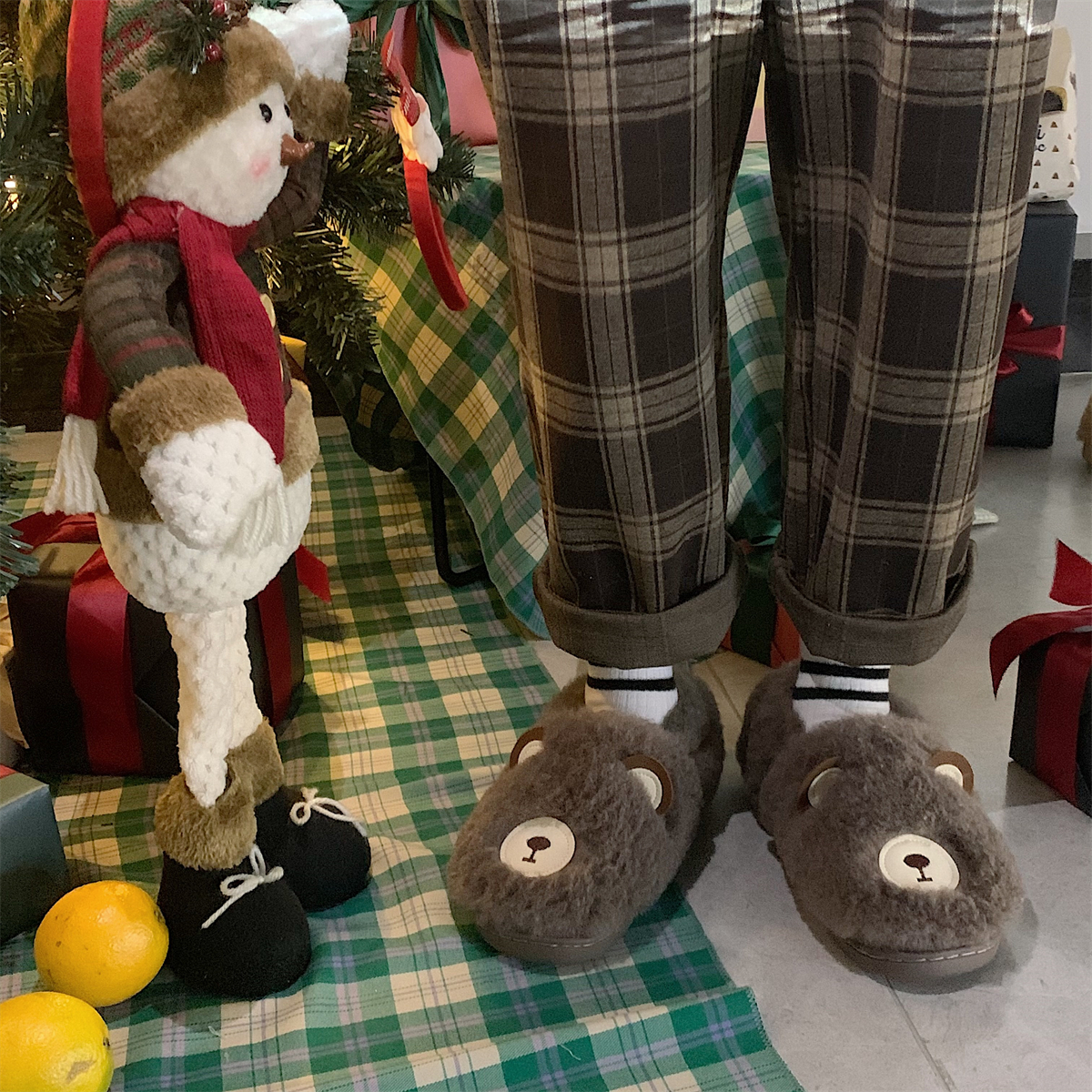 细细条 情侣全包跟保暖毛绒绒棉鞋女冬可爱小熊居家防滑棉拖鞋男,广东 揭阳