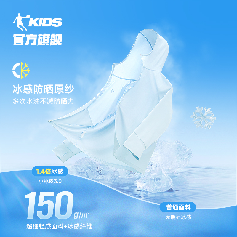 乔丹童装男童轻薄防晒服2025新款儿童防紫外线冰丝遮阳外套皮肤衣,福建 泉州