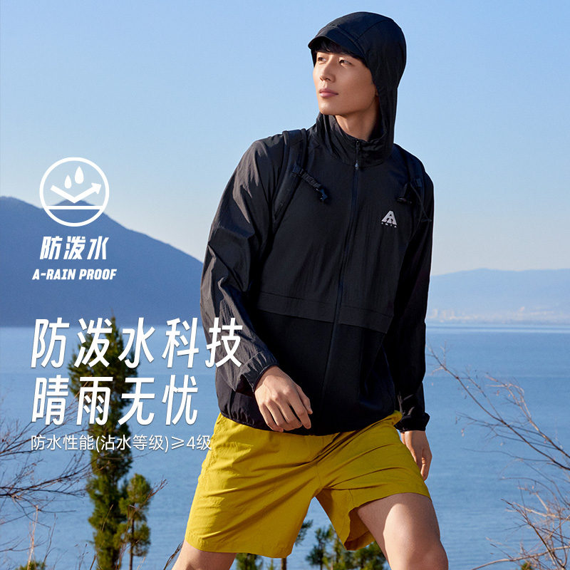 安踏轻壳防晒衣丨梭织皮肤衣男冬季薄款连帽外套风衣户外运动上衣