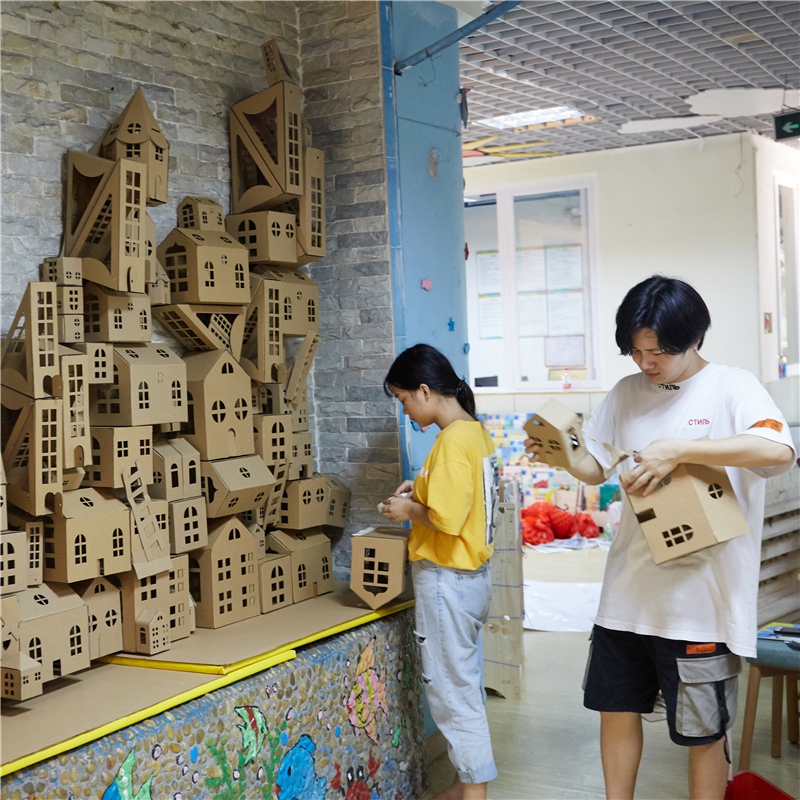 幼儿园纸板房子梦幻小镇环创材料建构区美工手工diy纸盒城堡小屋,浙江 宁波