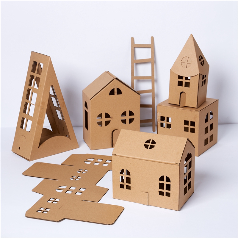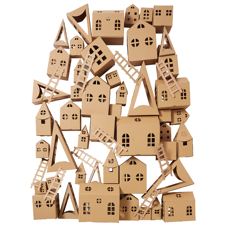 幼儿园纸板房子梦幻小镇环创材料建构区美工手工diy纸盒城堡小屋