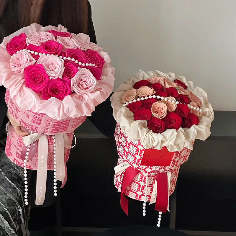 花喜爱喜庆花束包装纸喜字包花纸防水牛皮纸小香风结婚订婚材料