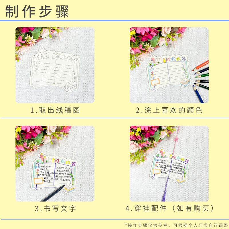 创意手绘书签手工diy材料阅读空白涂色卡半成品小学生好书推荐卡,福建 龙岩