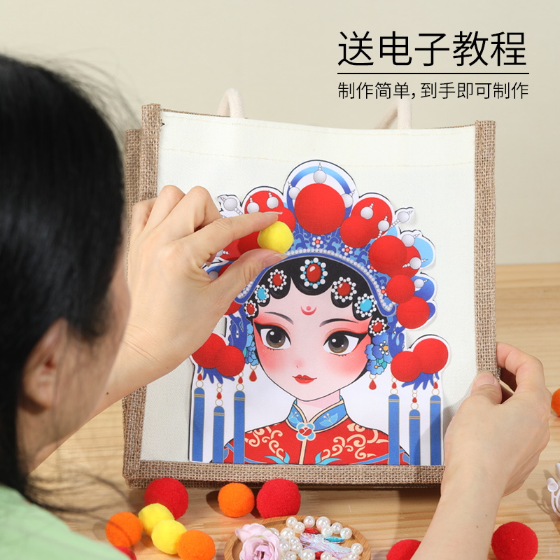 非遗京剧脸谱手工diy包包制作材料包手提袋戏曲创意国潮文创礼物,浙江 金华