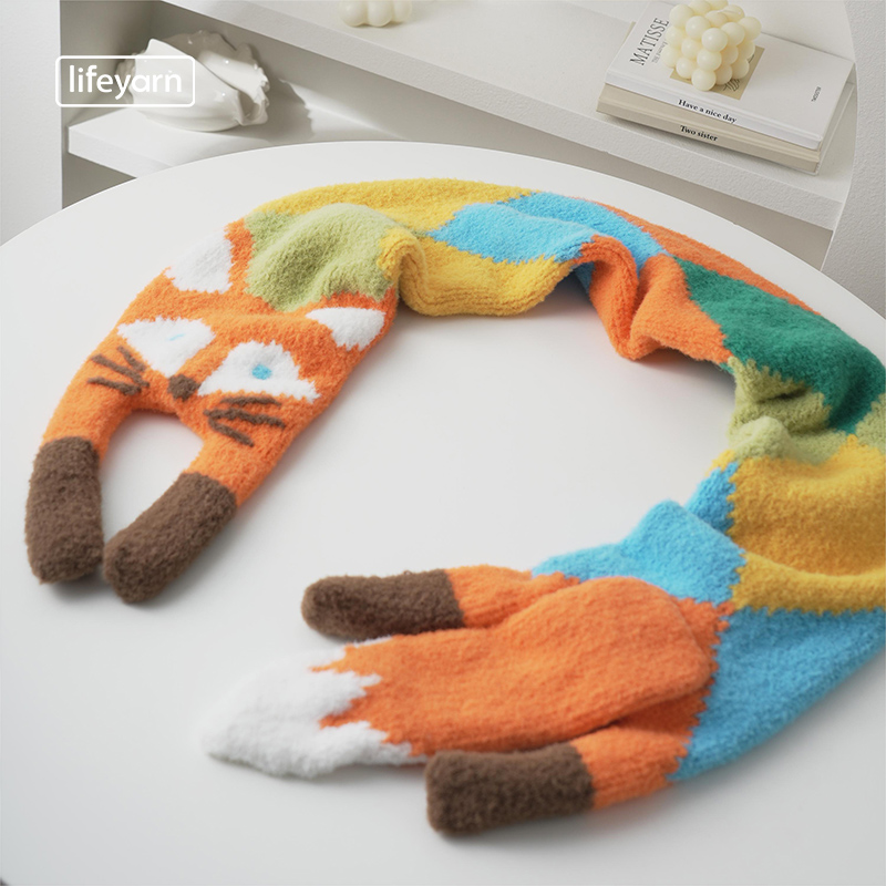 lifeyarn新品羽狐狸围巾材料包亲子款可爱棒针DIY创作送视频教程