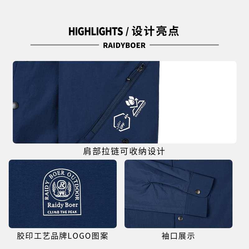 【防晒】Raidy Boer/雷迪波尔25春长袖衬衫运动户外皮肤衣男 9002