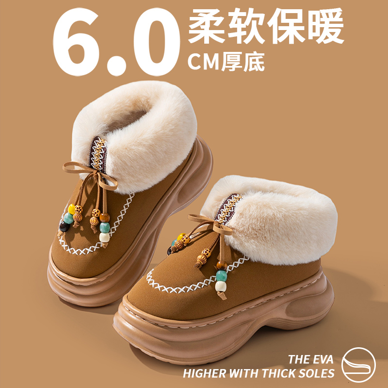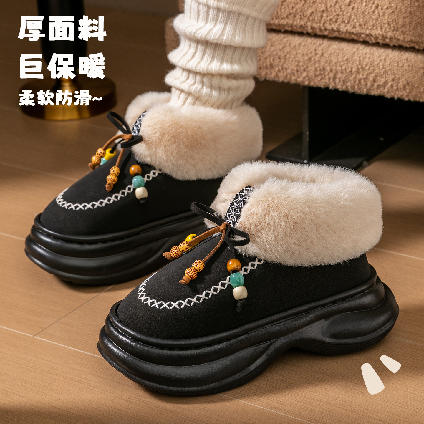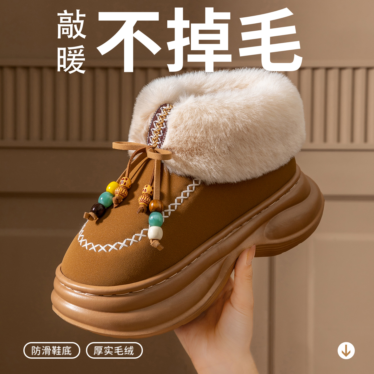 高颜值棉拖鞋女款厚底包跟外穿时尚增高拖鞋冬季居家加绒保暖棉鞋,浙江 杭州