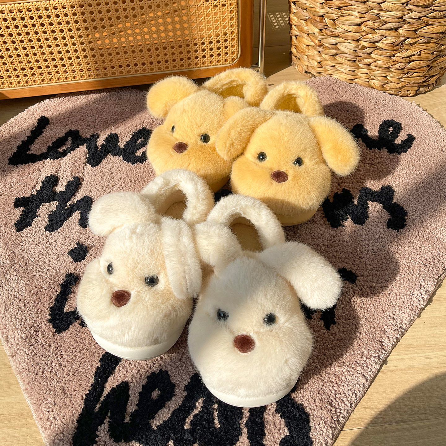 可爱小狗棉鞋女2025新款秋冬季居家防滑保暖厚底毛绒包跟棉拖鞋女,浙江 宁波