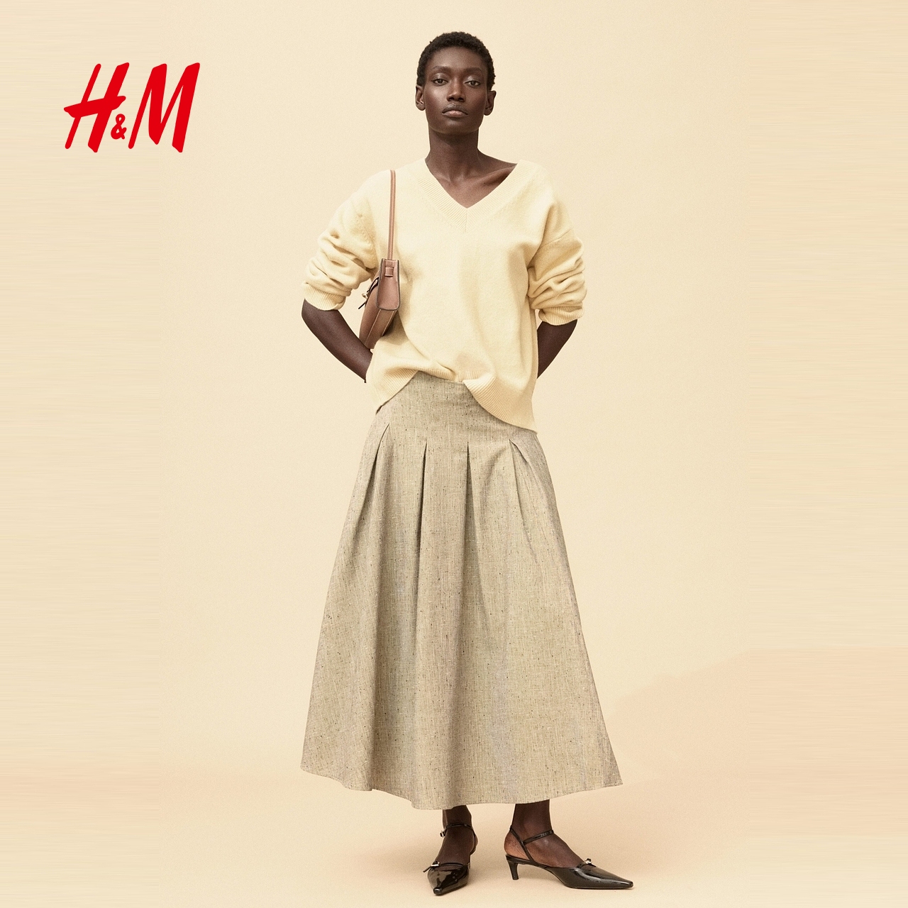 HM女装毛针织衫2025秋季新款保暖休闲毛衣大廓形V领套衫1303131