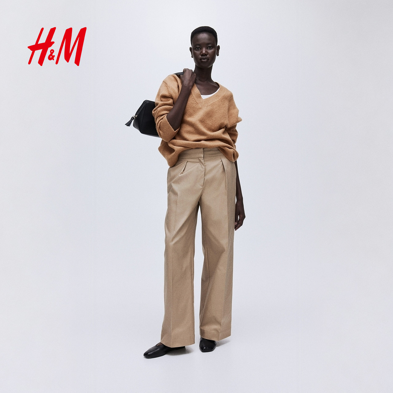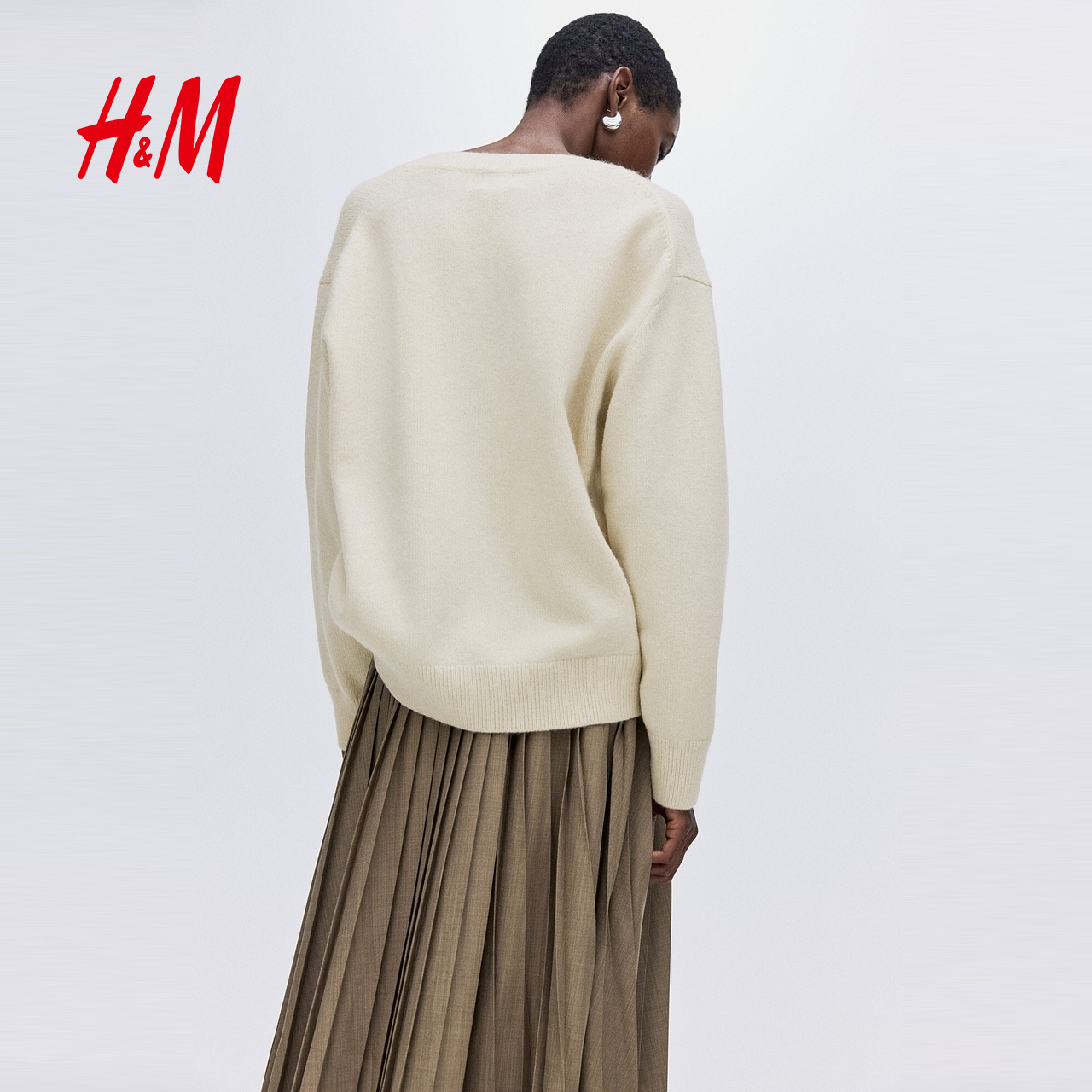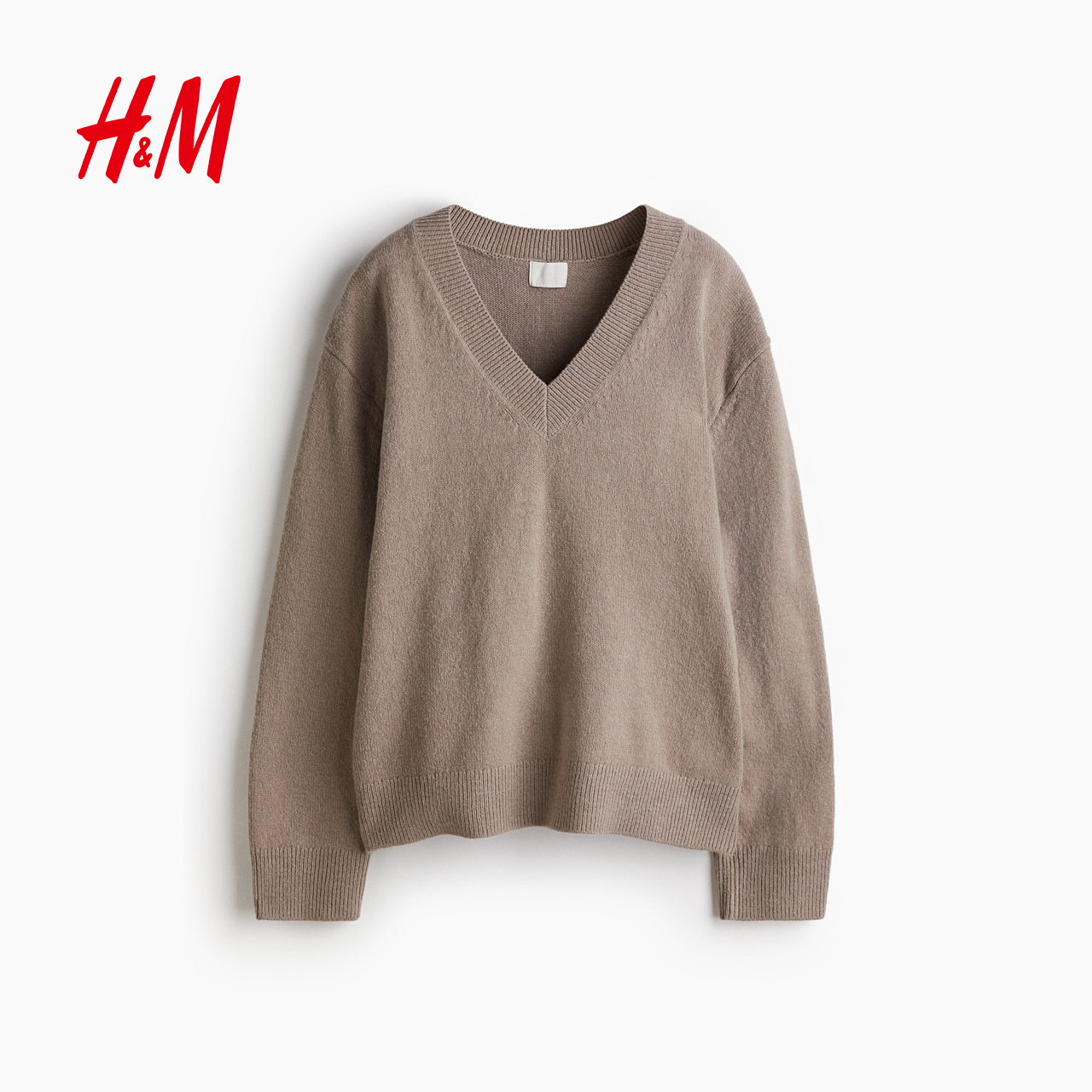 HM女装毛针织衫2025秋季新款保暖休闲毛衣大廓形V领套衫1303131,江苏 苏州