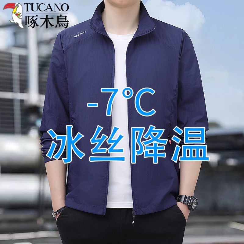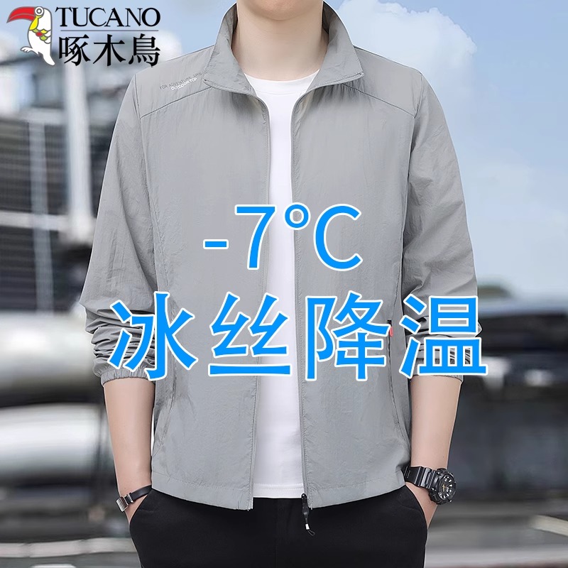啄木鸟冰丝速干防晒衣男士夏季薄款立领透气外套防紫外线皮肤衣
