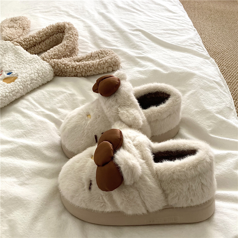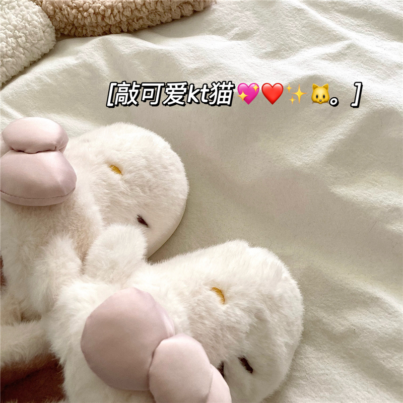 甜心奶油KT~!软糯厚实保暖居家包跟棉鞋女冬季ins厚底毛毛棉拖鞋,江苏 南京