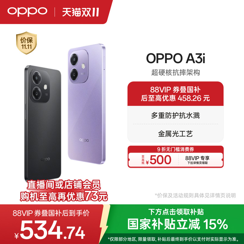 【官网】OPPO A3i 5G 超硬核抗摔架构 45W超级闪充 正品学生智能拍照老人机备用手机政府补贴oppo官方旗舰店,广东 东莞