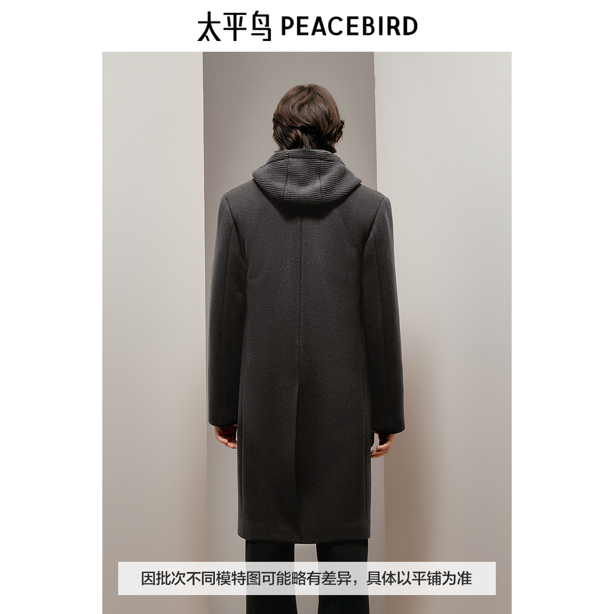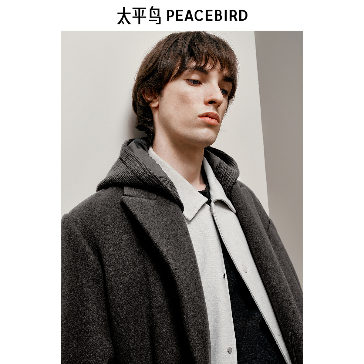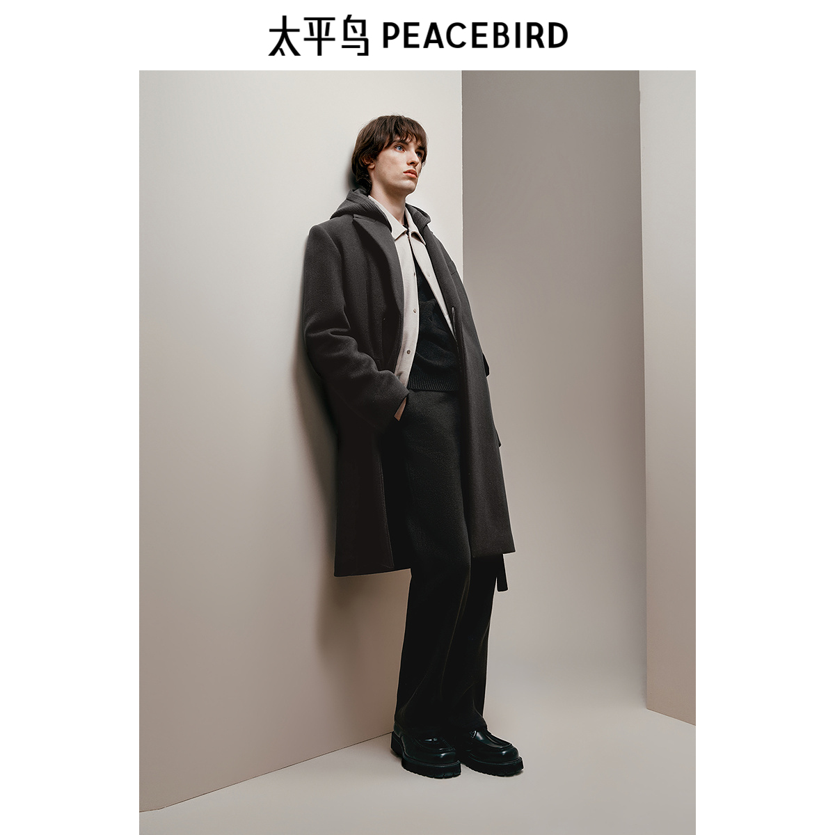 太平鸟男装 Juan alazar联名合作系列大衣中长连帽品质毛呢外套,浙江 宁波