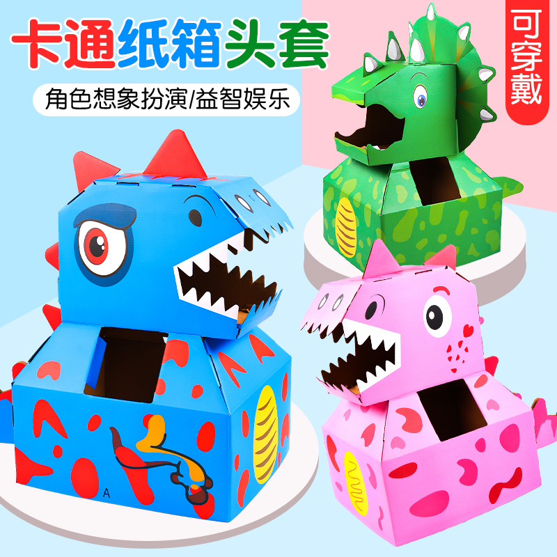 纸箱恐龙可穿戴霸王龙纸盒纸壳模型套头玩具儿童diy手工纸板箱子
