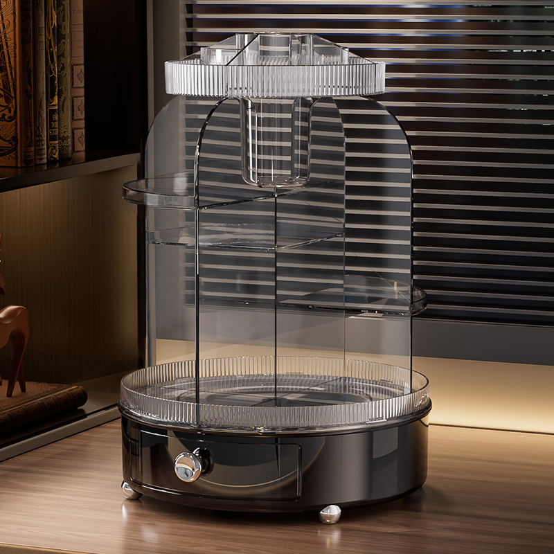 旋转化妆品收纳盒2025新款黑色高级感护肤品置物架化妆刷桶口红盒,浙江 金华