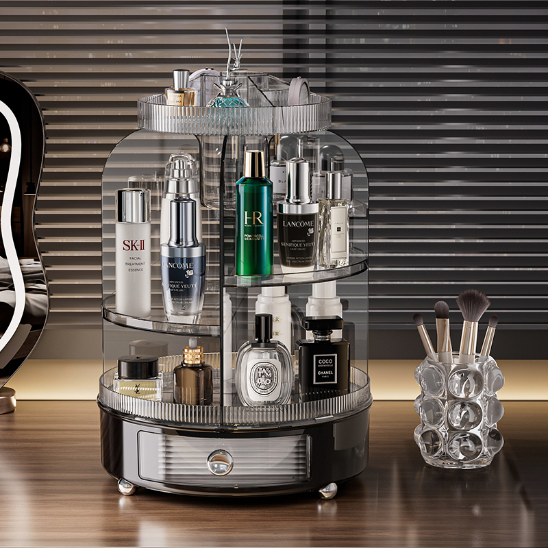 旋转化妆品收纳盒2025新款黑色高级感护肤品置物架化妆刷桶口红盒