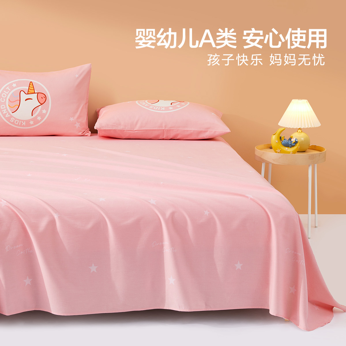 水星儿童纯棉磨毛床单宿舍单件100全棉抗菌印花A类秋冬单人被单,上海