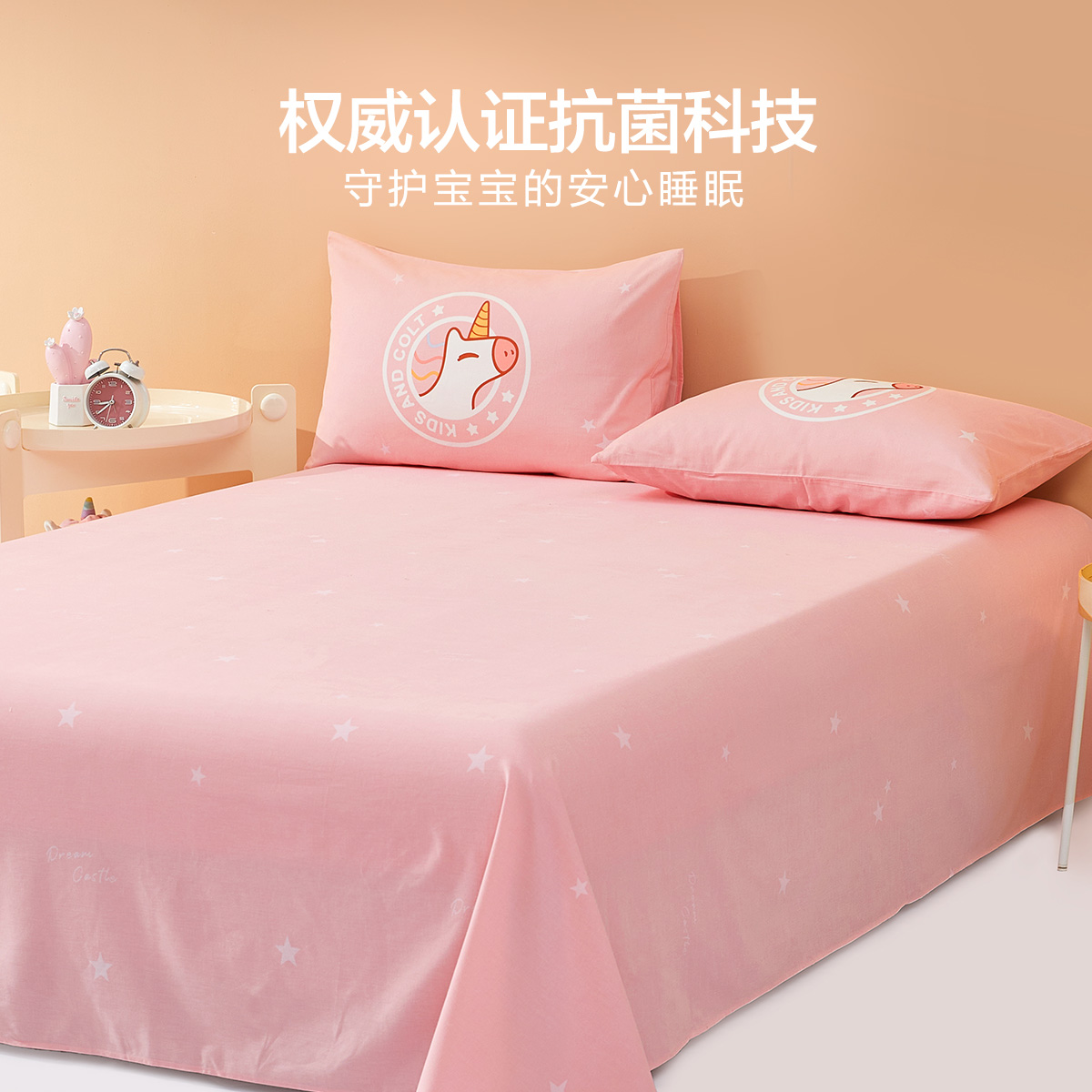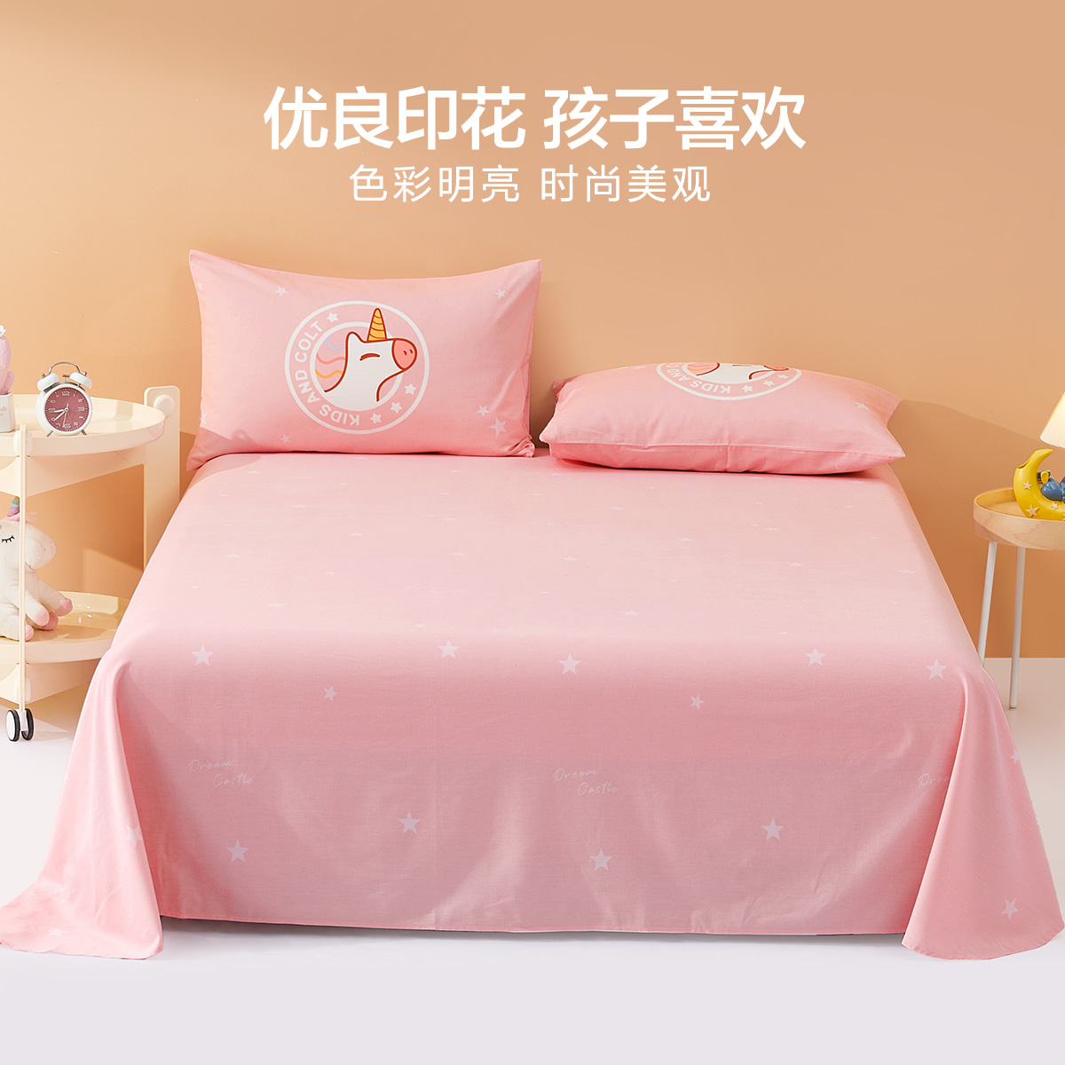 水星儿童纯棉磨毛床单宿舍单件100全棉抗菌印花A类秋冬单人被单