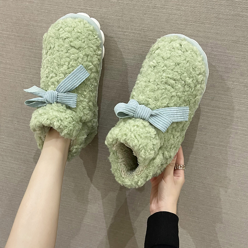 蝴蝶结棉拖鞋女包跟冬季日系厚底防滑保暖家居家室内家用月子棉鞋,浙江 宁波