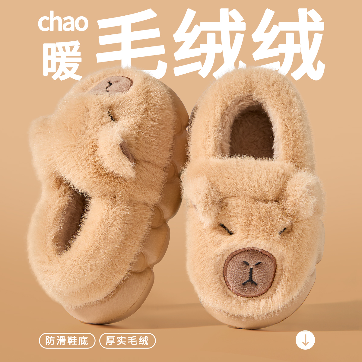 卡皮巴拉儿童棉拖鞋男童冬室内居家棉鞋宝宝毛毛绒包跟毛拖鞋男孩