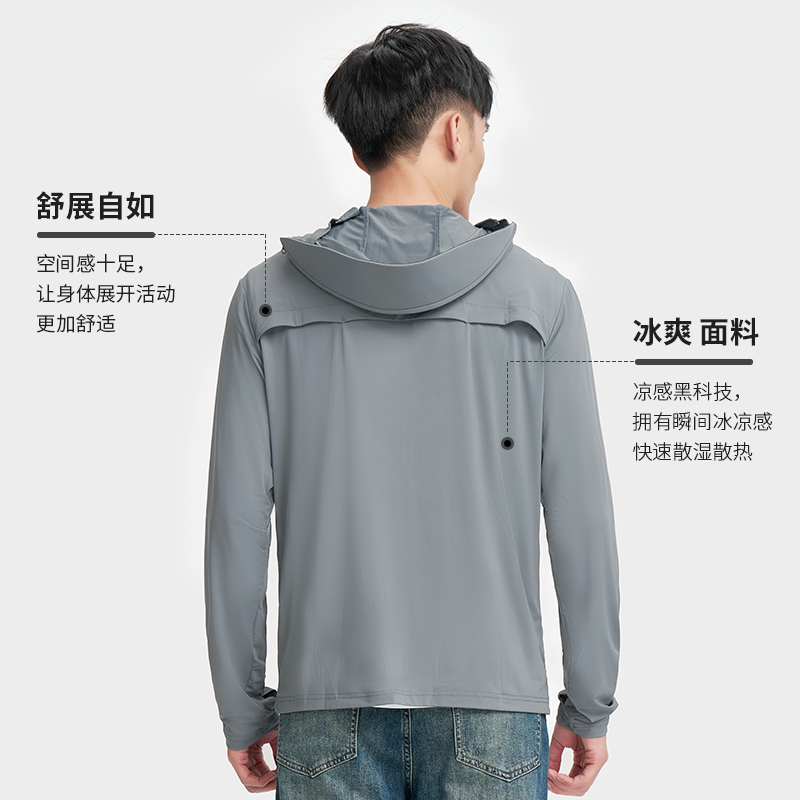 才子凉感防晒衣男新款防紫外线钓鱼服遮阳防晒衣帽遮脸一体皮肤衣
