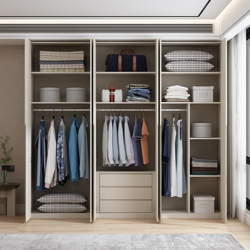 实木奶油风卧室家用平开门大衣柜储物柜现代简约定制