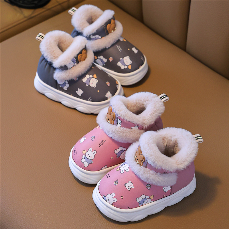 儿童棉鞋冬季女童防水防滑居家小孩中大童包跟雪地靴男宝宝棉拖鞋