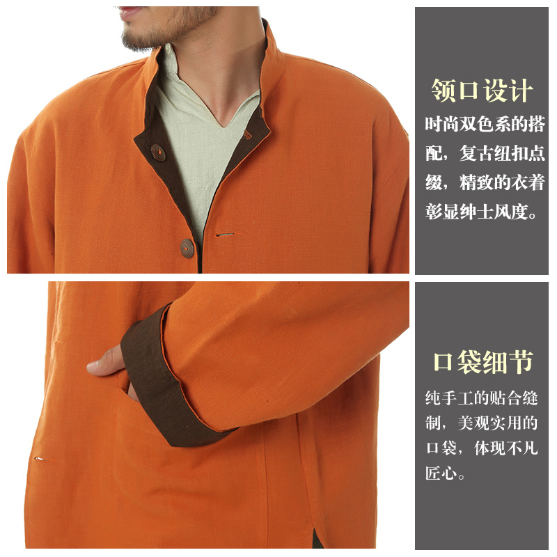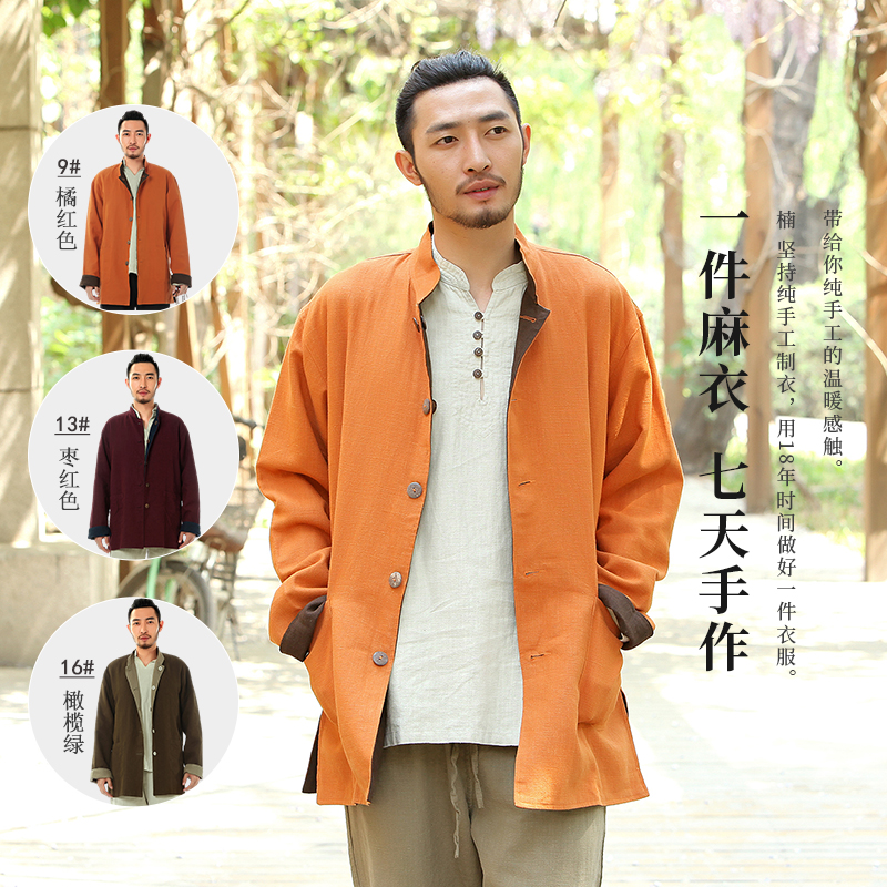 楠唐装中国风男装秋季上衣外套长袖上衣双面穿中年大衣中山装无华