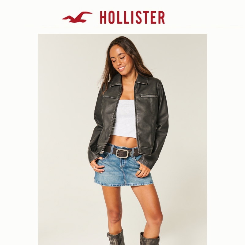 Hollister25秋冬新款哈灵顿机车人造革夹克外套女装344-5033,上海