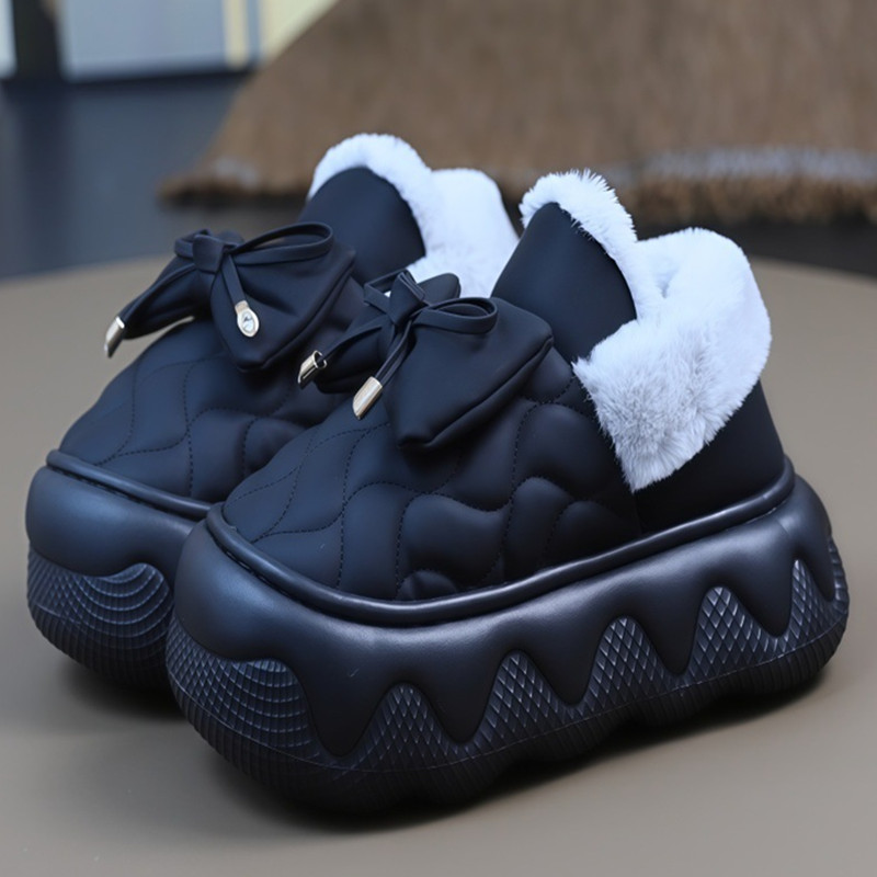 女士防水可爱棉拖鞋冬居家厚底防滑室内外穿加绒保暖包跟月子棉鞋