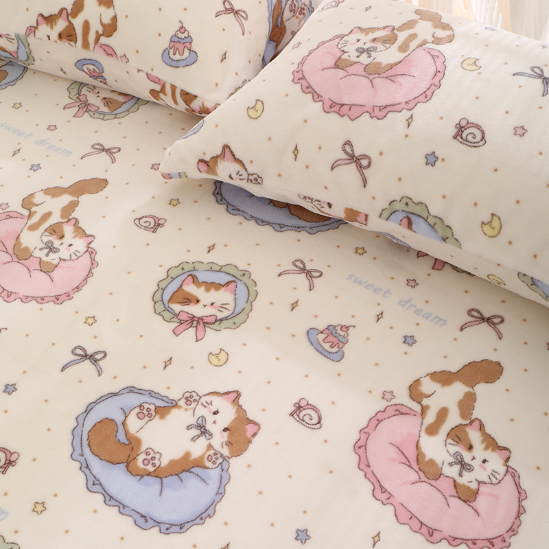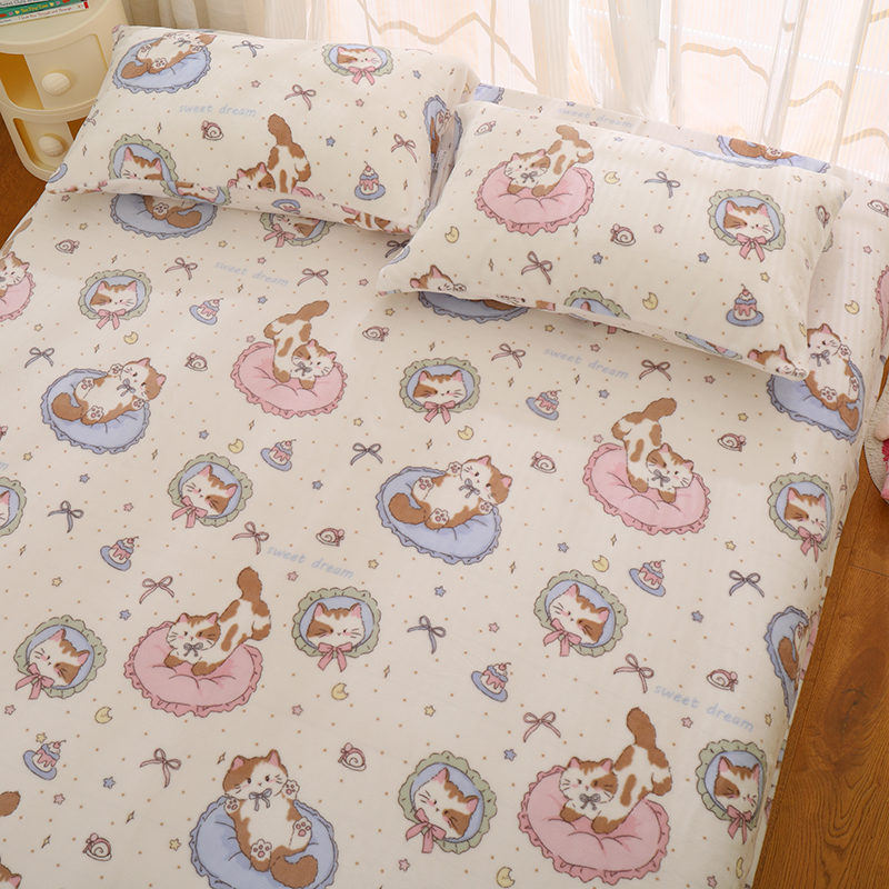 猫咪福宝冬季儿童牛奶绒床单单件珊瑚绒毛绒加绒冬季学生宿舍单人